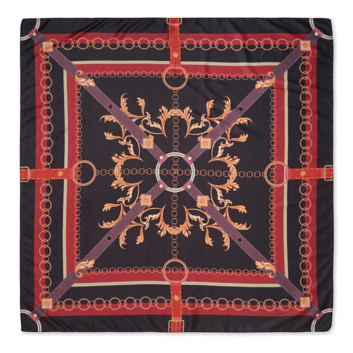 Shawl in recycled satin polyester with pattern.